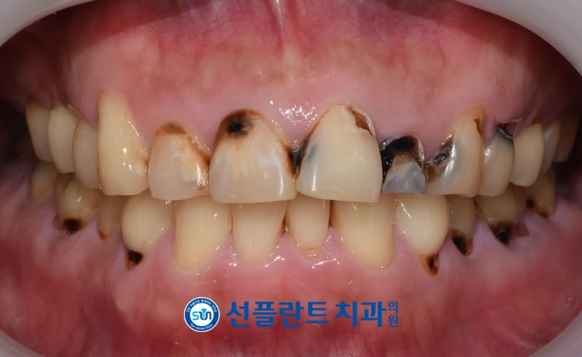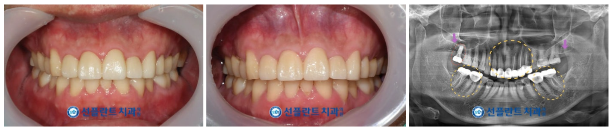 위턱 앞니와 아래턱 양측 어금니 부위는
